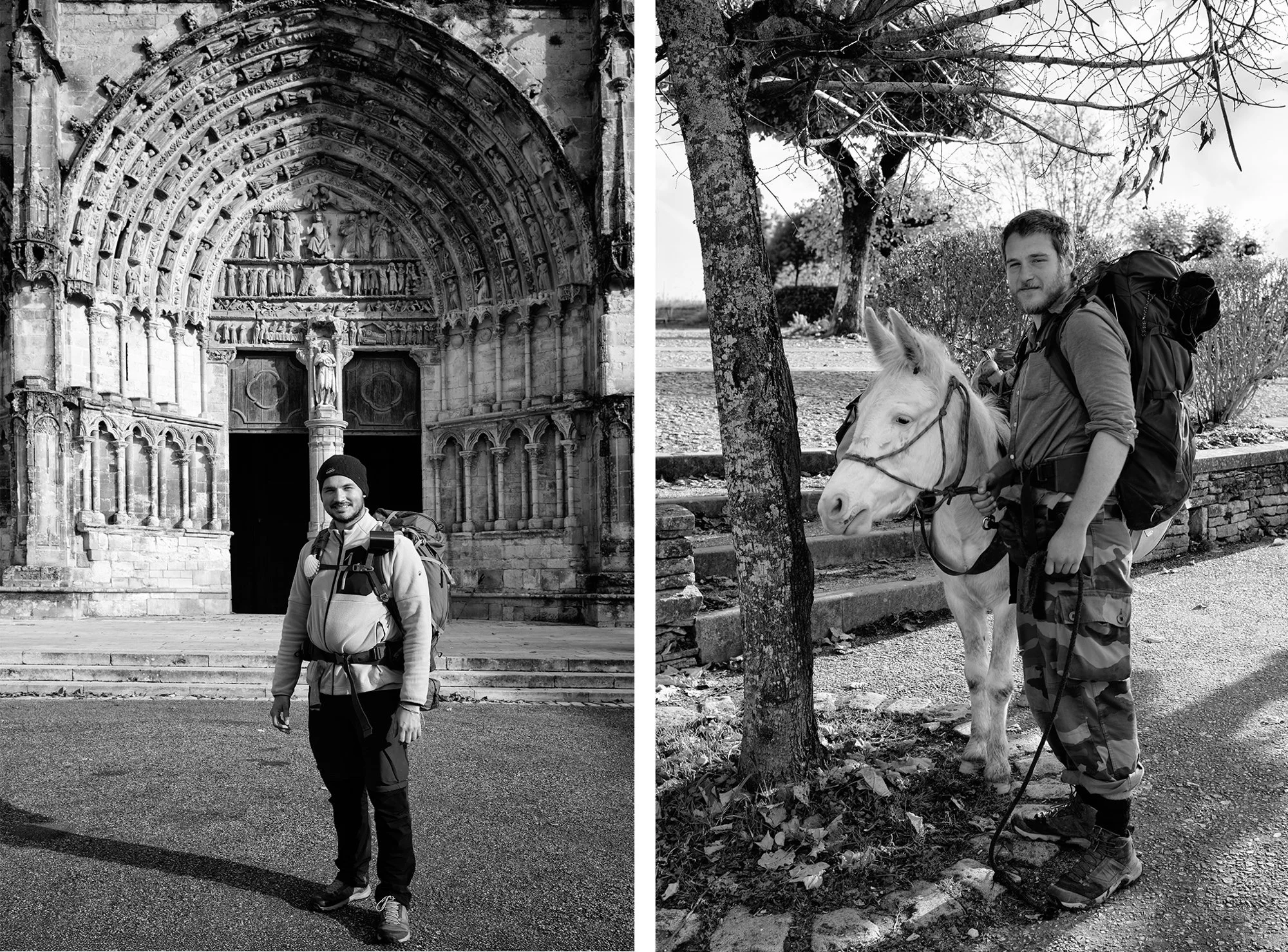 We meet them here and there, often alone on the path or resting near a cathedral or a small chapel. Some walk only a section, others are still making their way toward Santiago. A handful travel with a dog, or with a horse carrying their pack. Most walk simply and lightly, moving at a pace shaped by the season.